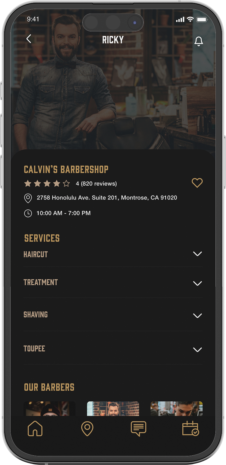 Whether you’re seeking a classic trim, a bold new style, or expert grooming advice, our app connects you with skilled barbers tailored to your specific needs. Say goodbye to endless searches and mediocre haircuts – with us, your perfect barber is just a tap away.