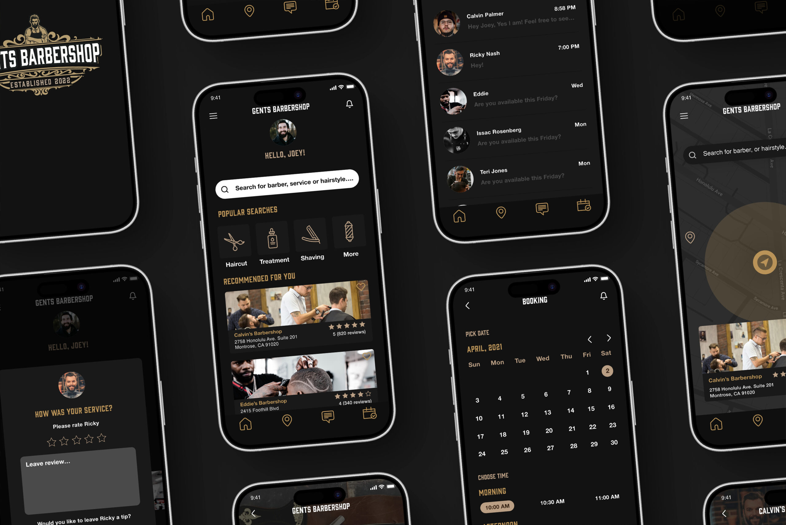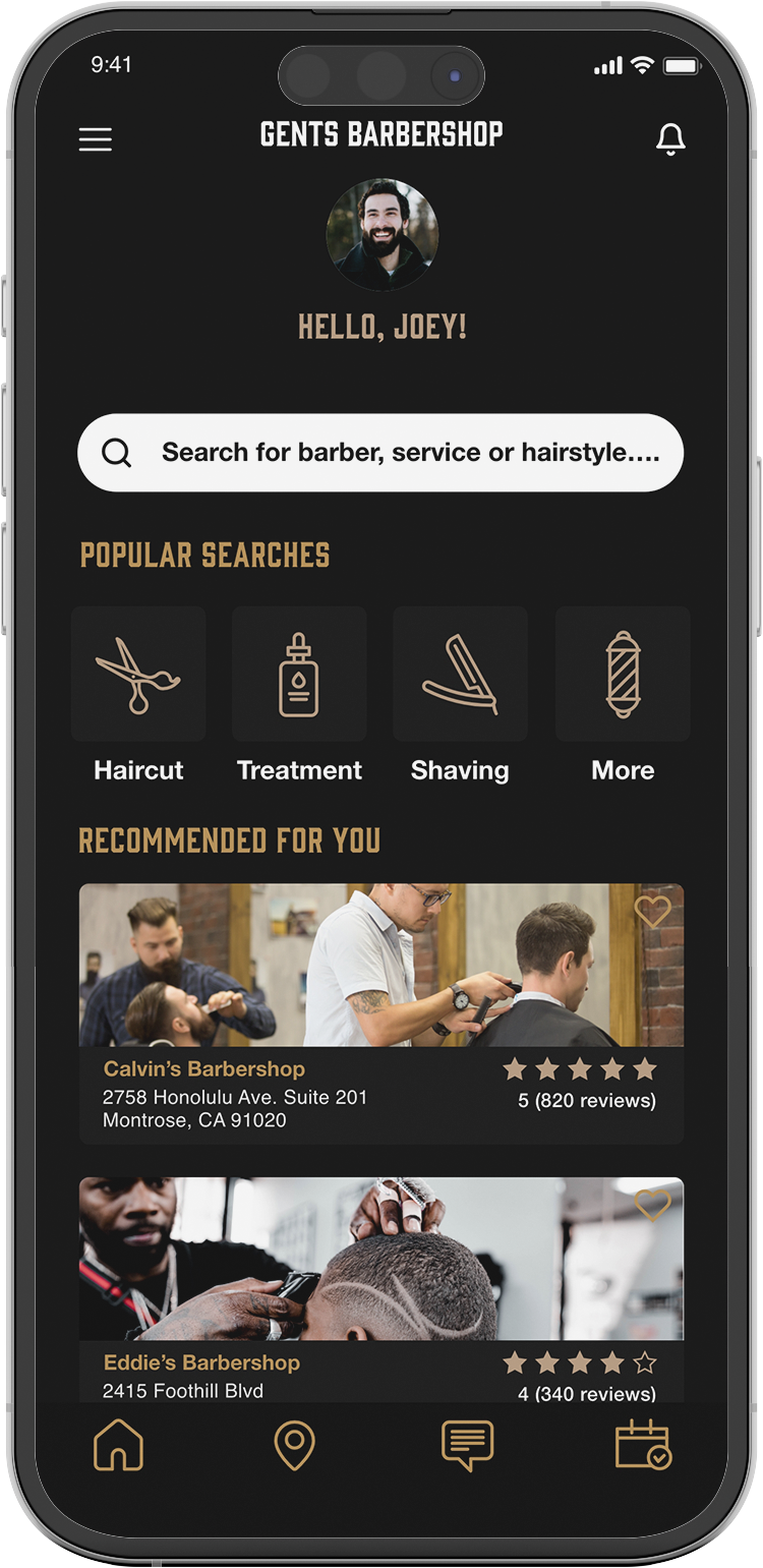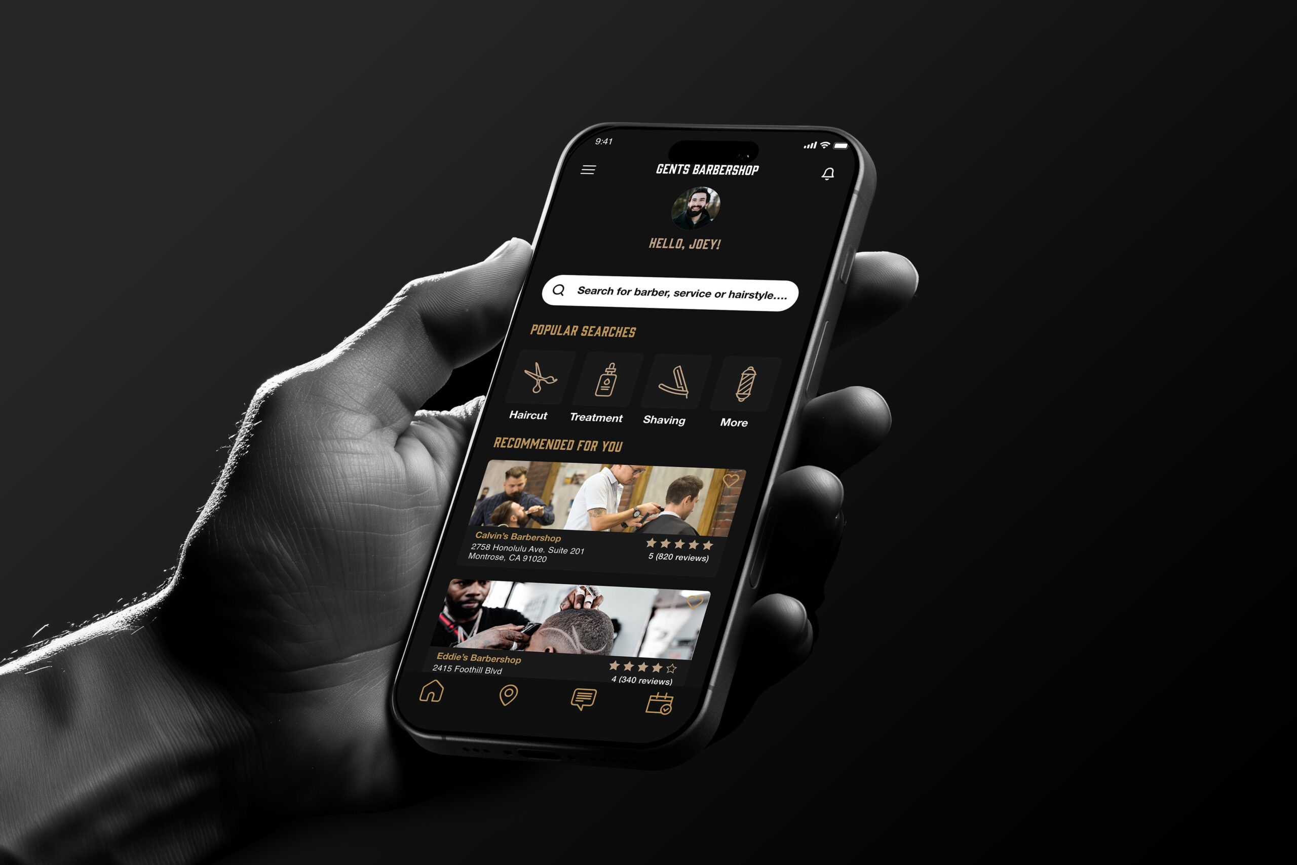 Gents Barbershop App is your personal barber curator, delivering tailored recommendations based on user preferences, stylist profiles, and reviews. With an intuitive interface, users can easily browse barbers by location, price, and services, book appointments, and communicate directly with their chosen barber—all in one seamless experience.