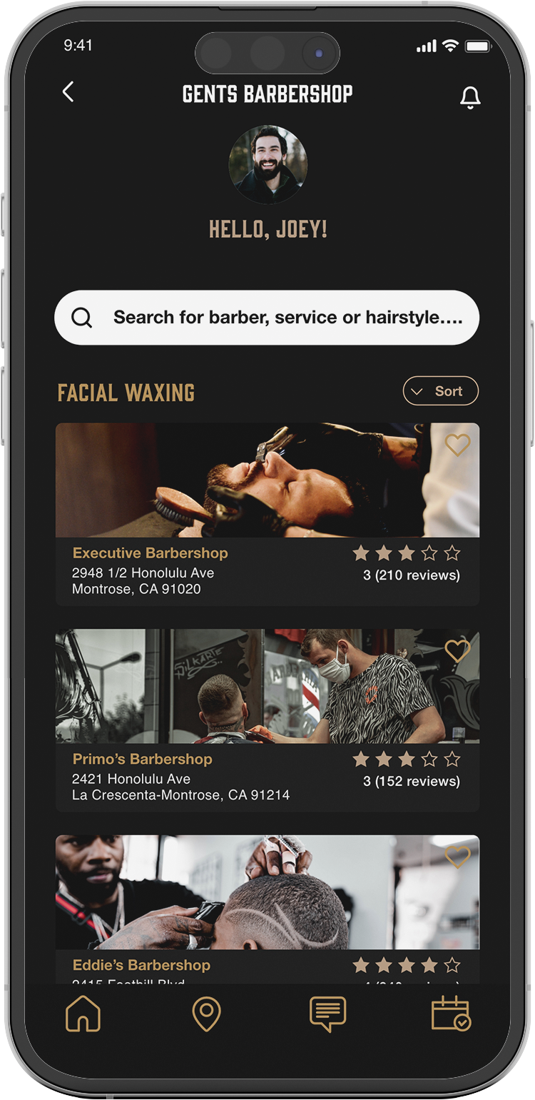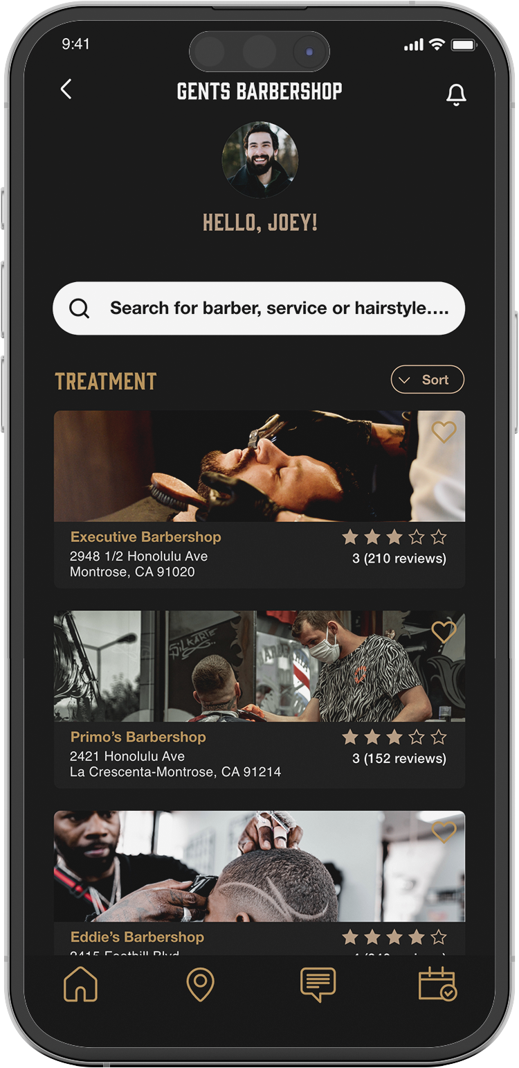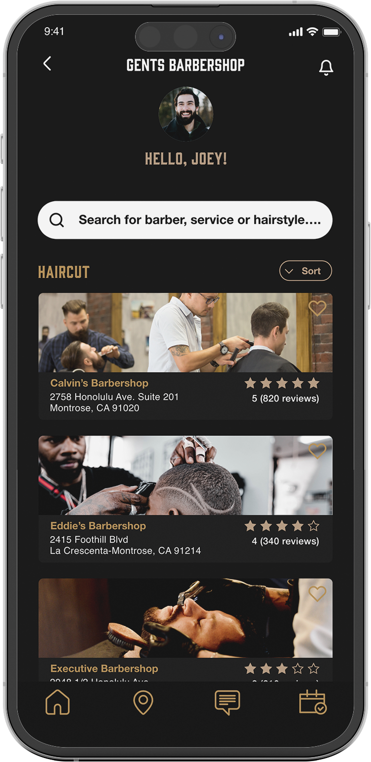 Gents Barbershop App is your personal barber curator, delivering tailored recommendations based on user preferences, stylist profiles, and reviews. With an intuitive interface, users can easily browse barbers by location, price, and services, book appointments, and communicate directly with their chosen barber—all in one seamless experience.